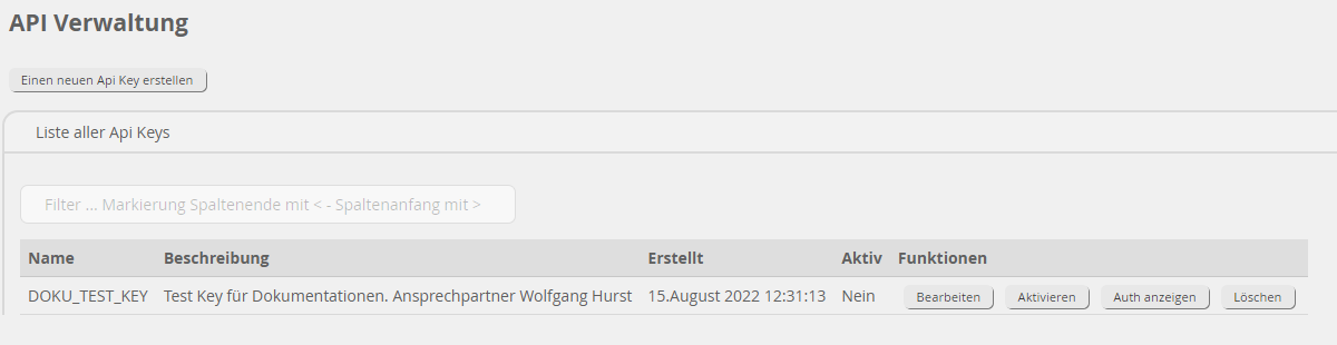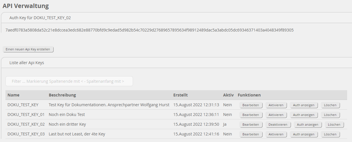 Das Frontend erlaubt nun die Verwaltung von diesen AuthKeys.