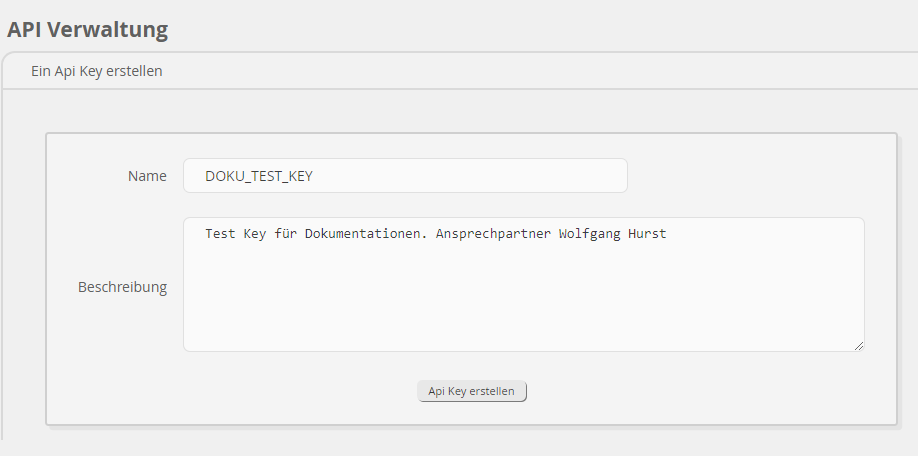 Bei der Erstellung eines neuen Keys wird nach einem Namen und einer Beschreibung gefragt. Der Name sollte kurz und Knackig sein, die Beschreibung sollte irgendwie die Ansprechpartner beinhalten.